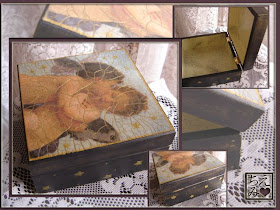 Essa caixa de madeira também é reciclada, agora guarda minhas cartinhas, técnica de decoupagem.