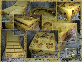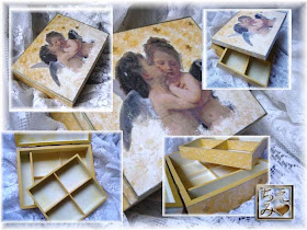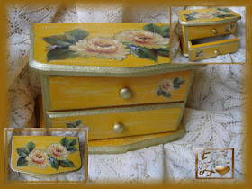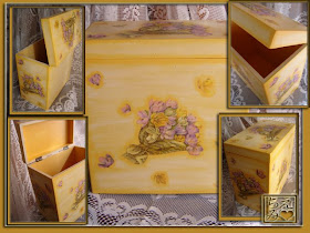 Esta foi uma caixinha de madeira que veio medicamento, eu reciclei ela com massa e decoupagem.