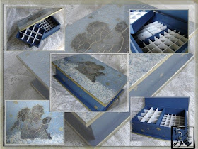 Essa caixa ganhei crua da minha amiga, decoupagem e respingos com escova de dente.