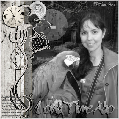 É divertido fazer scrapbook, o mais legal não é participar pra ganhar o desafio e sim praticar a criatividade e ver a criatividade de outras pessoas, transformando um mesmo kit e template num trabalho completamente diferente do seu! Esse kit monocromático faz lembrar passado pra mim, então fiz um scrap com uma foto de uma viagem que fiz anos atrás! E achei que a gaiolinha combinaria com a arara hehehehe! Pratiquem scrapbook é muito divertido!